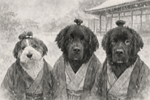 今日から仕事デス!(^^)! ワンズも一緒に出勤しています(*^-^*) お正月用に撮った写真をChatGPTで加工してみました( *´艸`) AIの進化に驚きました(*´з`)