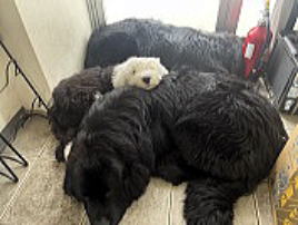 ブンさんが見つめる先は・・・。 やっぱりギュウギュウになっていました・・・(*´з`) ライは首が痛くないんだろうか・・・(;´∀`)