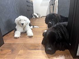 狭い通路にボンとデンがギュウギュウになって寝ていました・・・(;´∀`) キッチンに全員集合すると作業が進みません・・・(*´з`)