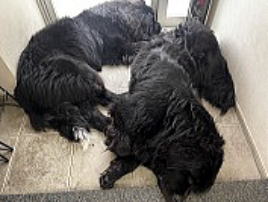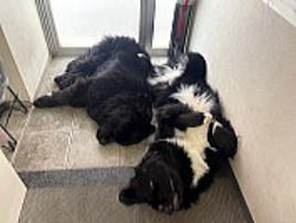 いつものように玄関を占拠して寝ているボンとデン(*^^*) デンの寝相が・・・(;・∀・) しばらくして見てみるとボンとデンが入れ替わって寝ていました( *´艸`)
