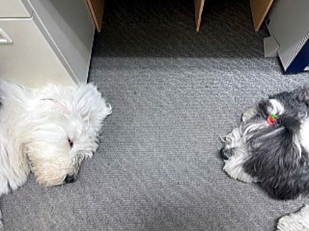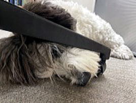 椅子の下で寝ているブンさんとライ・・・(;´∀`) 椅子動かせないんですけど・・・(*´з`) ブンさん顔が椅子の足に挟まってますよ・・・(≧▽≦)