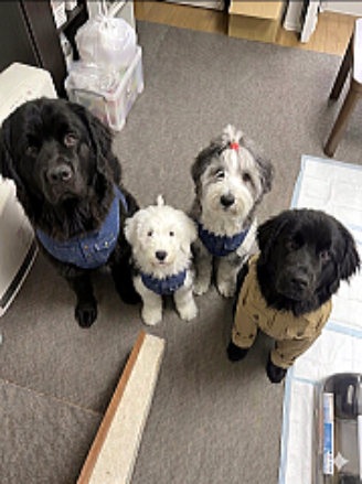 全員カメラ目線での写真撮影は無理なので、加工しました( *´艸`) 作業着を着せてみました(^^♪